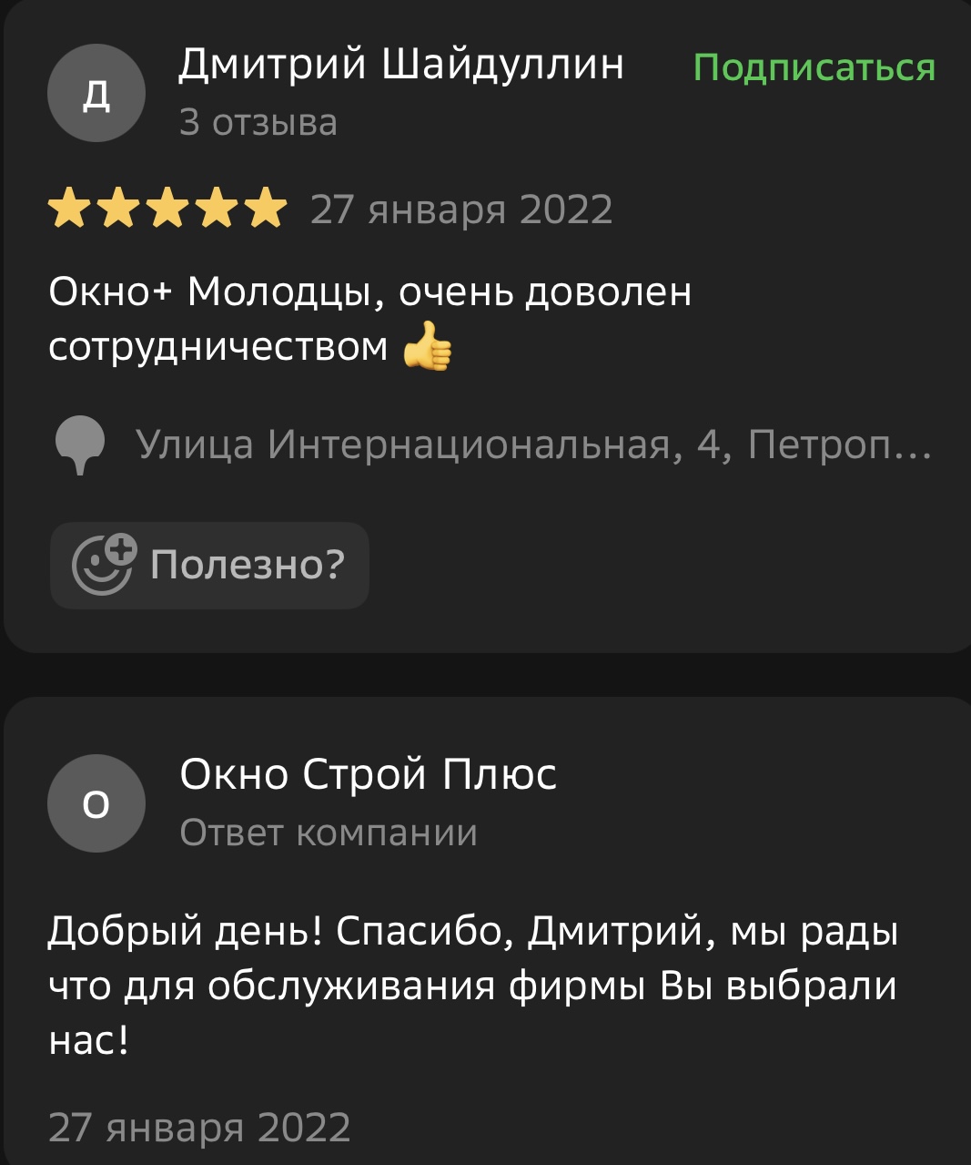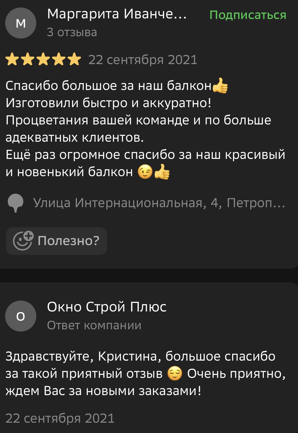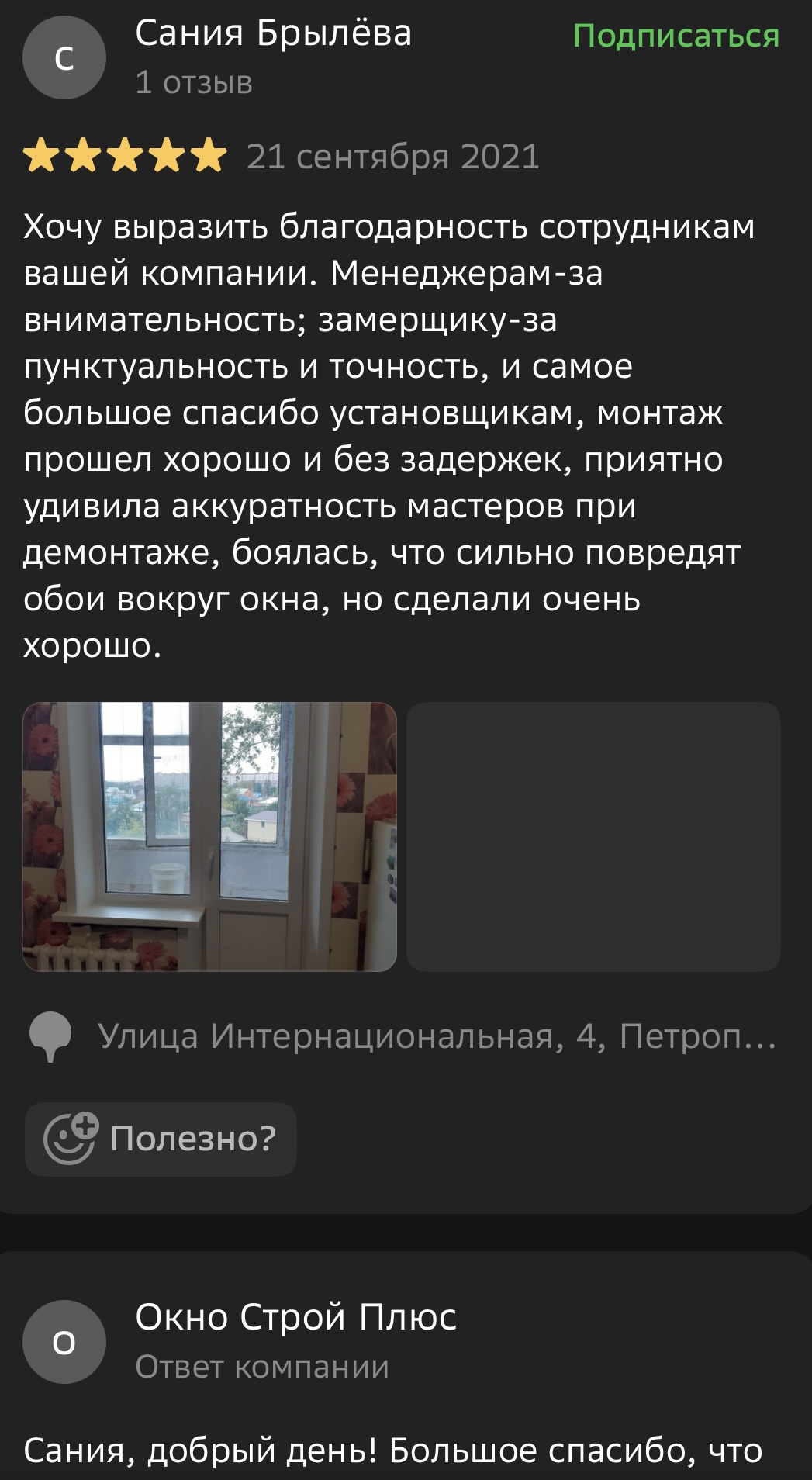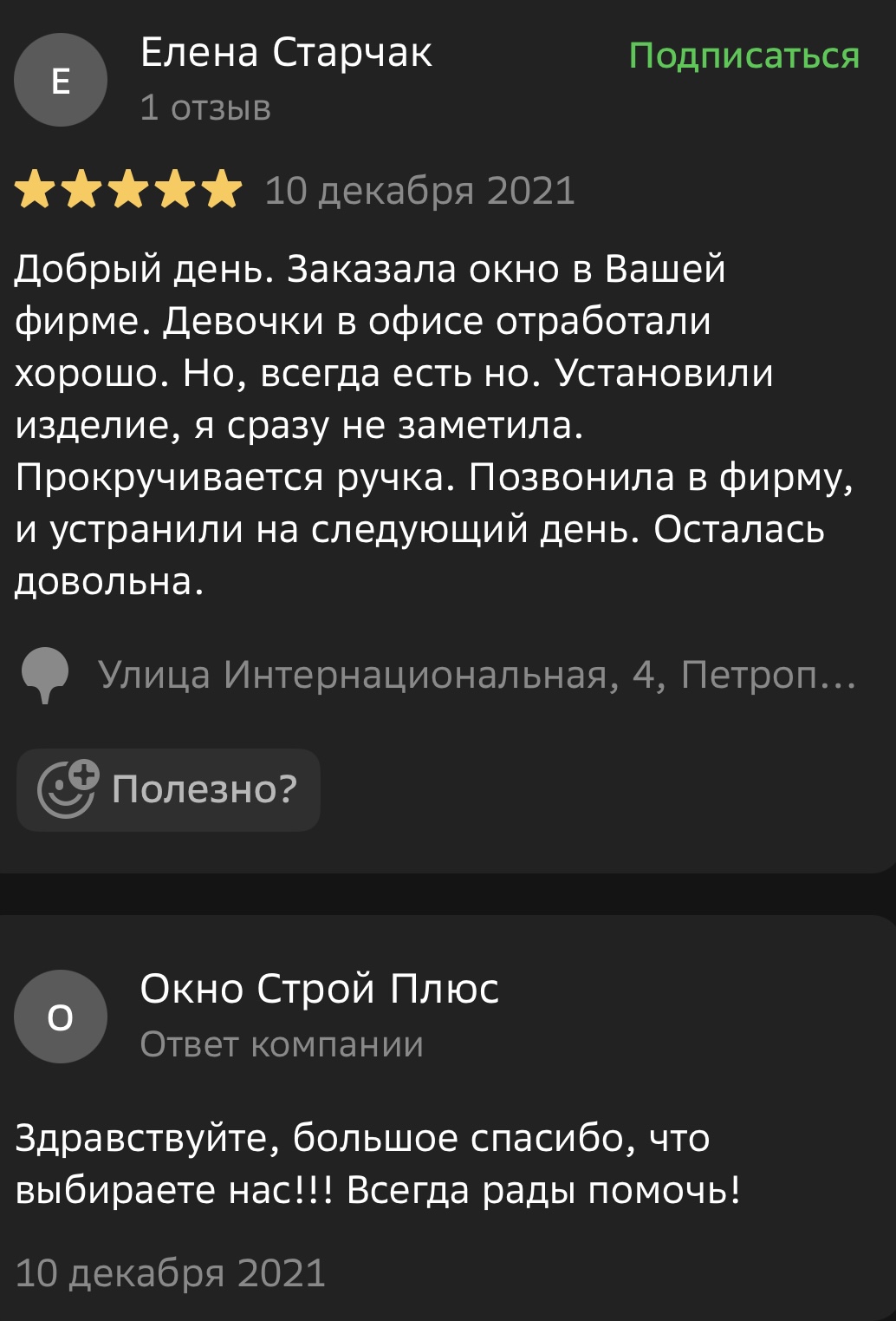 Мы ценим обратную связь и внимательно относимся к каждому отзыву. Поделитесь своим впечатлением о работе с компанией «Окно Строй Плюс» — оставьте отзыв на сайте или направьте его нам в WhatsApp.