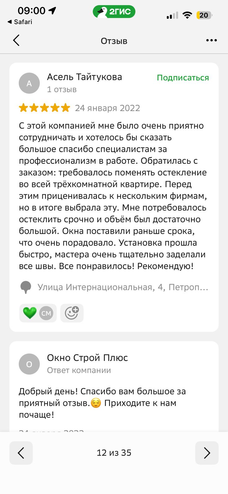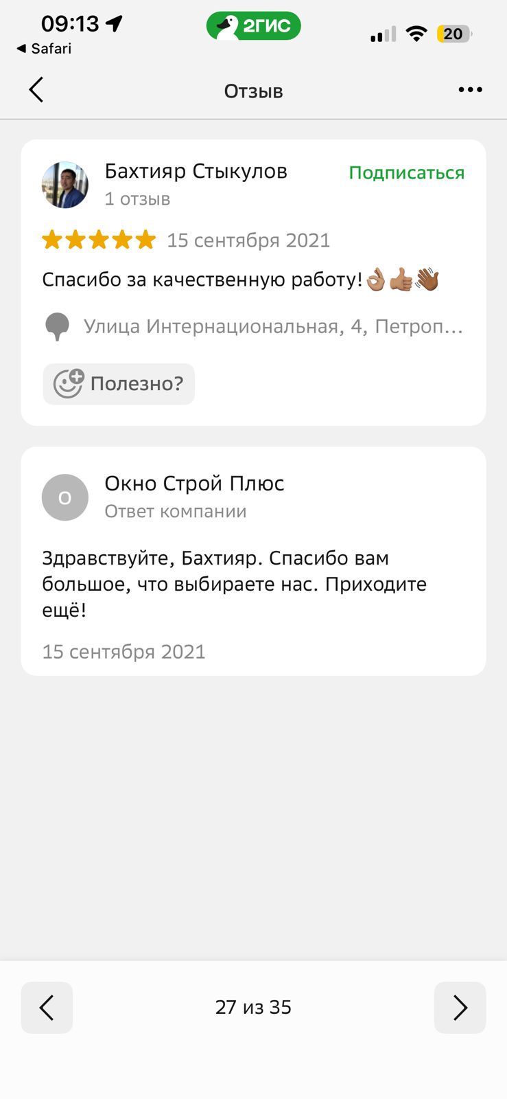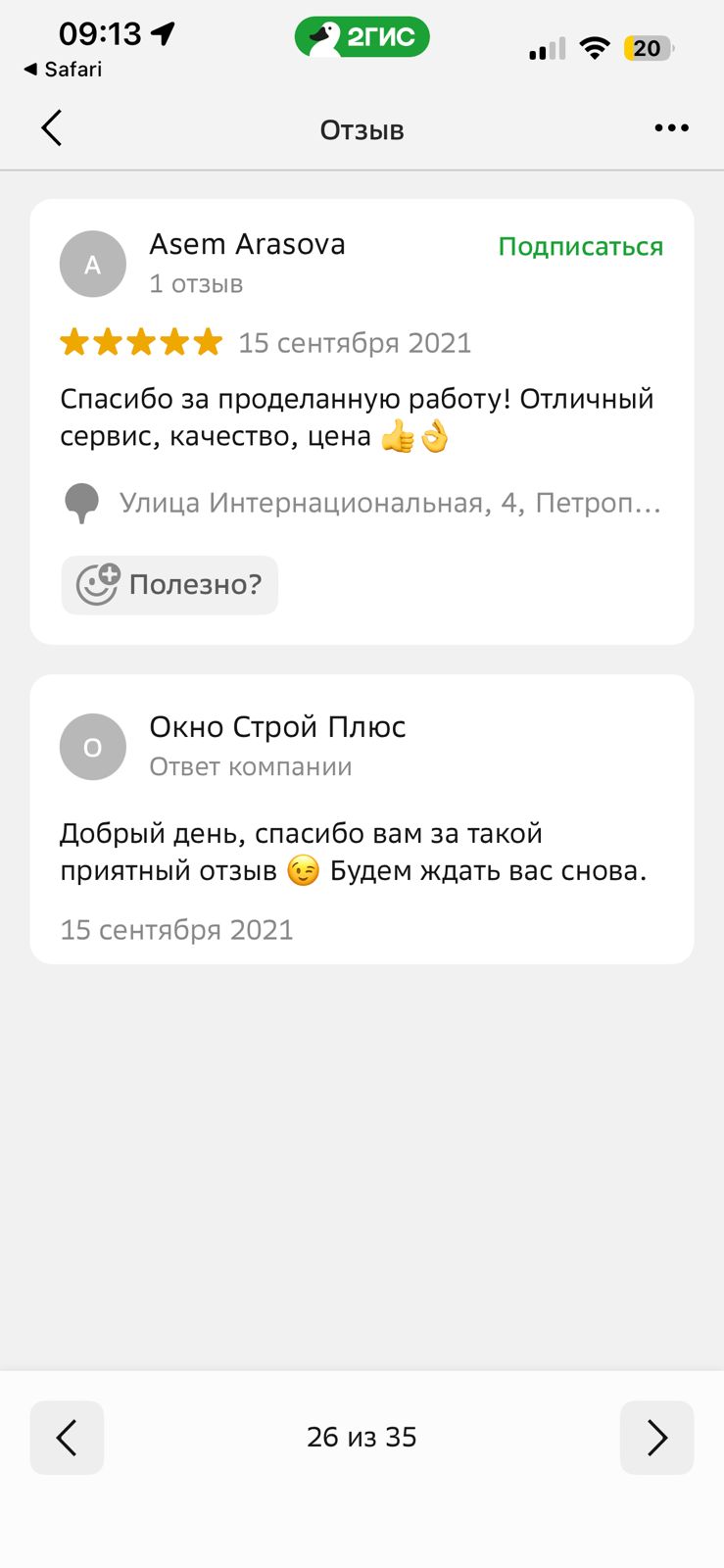 Мы рады получить любой отзыв об “Окно Строй Плюс”. Если у Вас был опыт взаимодействия с нашей компанией - не стесняйтесь оставить свой отзыв здесь, либо направить его отсканированную копию на фирменном бланке на электронную почту info@okno-plus.kz.